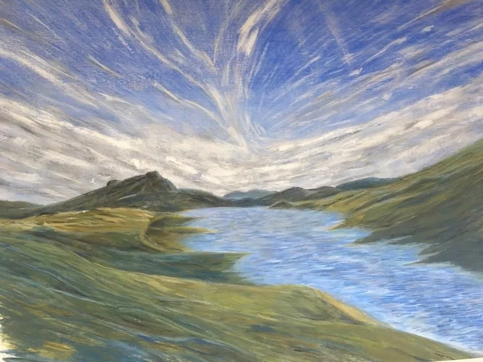 This is a picture I painted of a mountain called Ben Hope. Using acrylics on paper, I tried to capture the windswept landscape, with the Ben Hope itself rising on the left, dominating everything around it. Always curious as to what it would be like to get closer to it, knowing that this wouldn't be possible, this mountain has inspired many creative outputs over the years as I attempt to conqueror it in other ways.